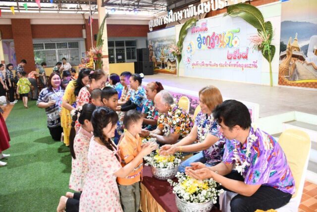 วันที่ 10 เมษายน 2568 นางสาวธนภร ฤทธิแผลง ผู้อำนวยการโรงเรียนราชประชานุเคราะห์ 63 จังหวัดร้อยเอ็ด ปฏิบัติหน้าที่ผู้อำนวยการศูนย์การศึกษาพิเศษ ประจำจังหวัดอุดรธานี พร้อมด้วยรองผู้อำนวยการ คณะครู และนักเรียน จัดกิจกรรมวันสงกรานต์ สรงน้ำพระ รดน้ำดำหัวขอพรผู้ใหญ่ และการละเล่นพื้นบ้าน ซุ้มอาหาร เป็นประเพณีเก่าแก่ของไทยที่สืบทอดมาตั้งแต่สมัยโบราณ ที่มีความงดงาม อ่อนโยน เอื้ออาทร และเต็มไปด้วยบรรยากาศของความกตัญญูความสนุกสนาน ความอบอุ่น และการให้เกียรติเคารพซึ่งกัน โดยใช้ “น้ำ” เป็นสื่อในการสร้างสัมพันธไมตรีที่ดีต่อกัน