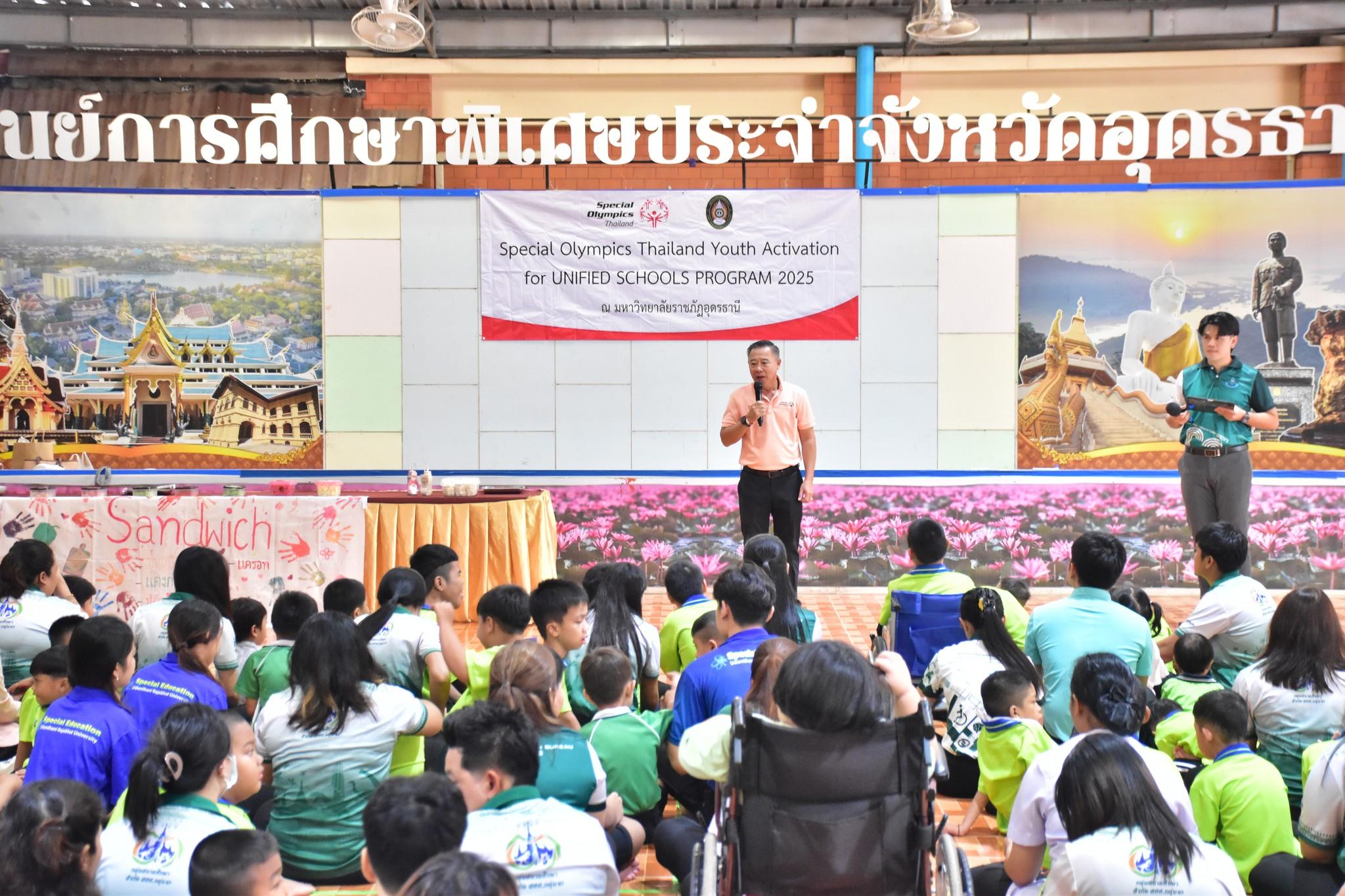 วันที่ 24 กันยายน 2568 ศูนย์การศึกษาพิเศษ ประจำจังหวัดอุดรธานี นักศึกษาสาขาการศึกษาพิเศษ มหาวิทยาลัยราชภัฎอุดรธานีจัดกิจกรรม (walk rally) ร่วมกับ Special Olympics Thailand Youth Activation for UNIFIED SCHOOLS PROGRAM 2025 เพื่อให้นักศึกษาได้บูรณาการความรู้ความเข้าใจในการจัดการเรียนรู้ให้นักเรียนที่มีความต้องการจำเป็นพิเศษและได้แสดงสมรรถนะ โดยการปฏิบัติในสถานการณ์จริง วิทยากรจากสมาคมกีฬาสเปเชียลโอลิมปิค คุณทศพล ต้นสกุล