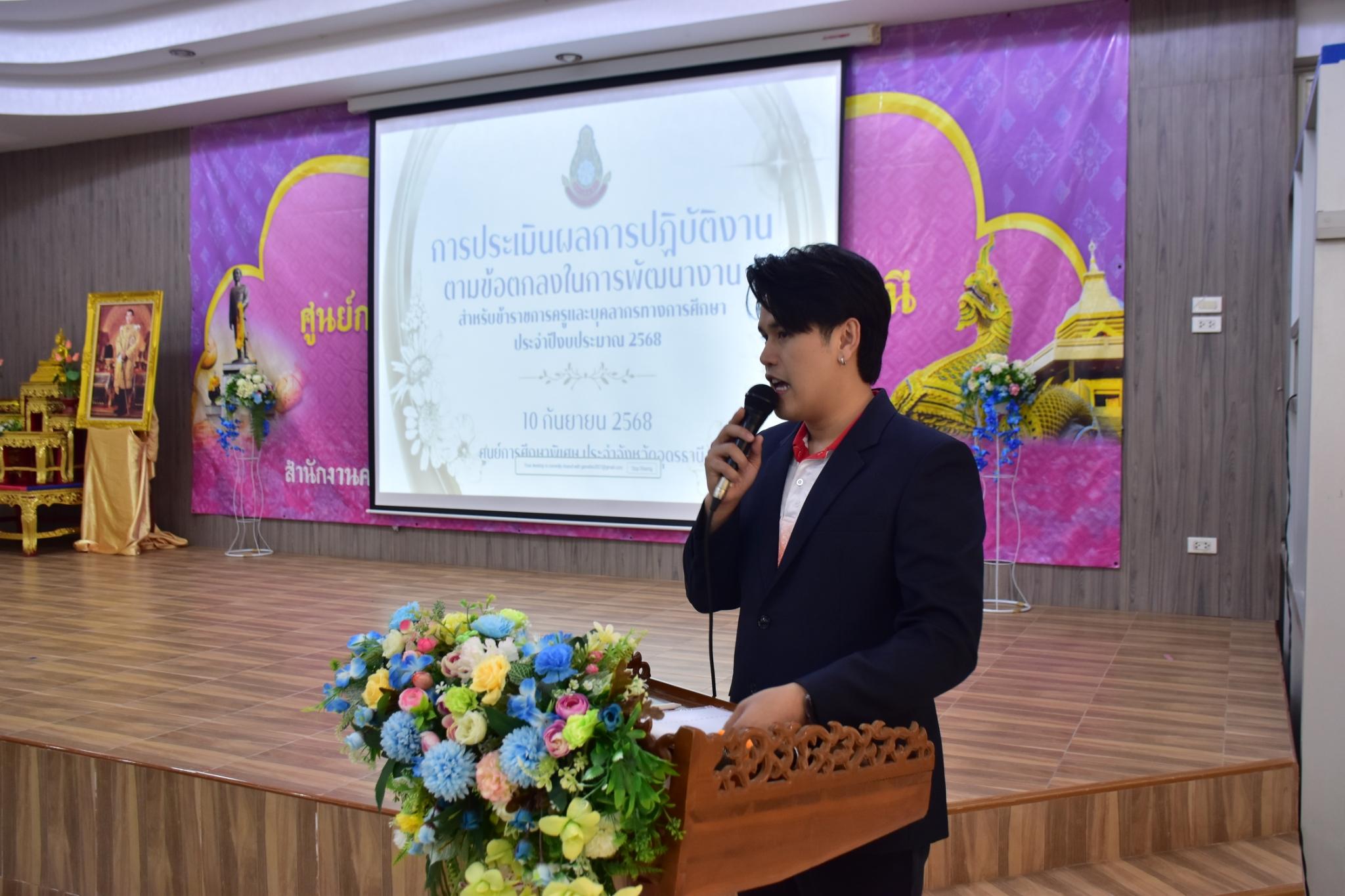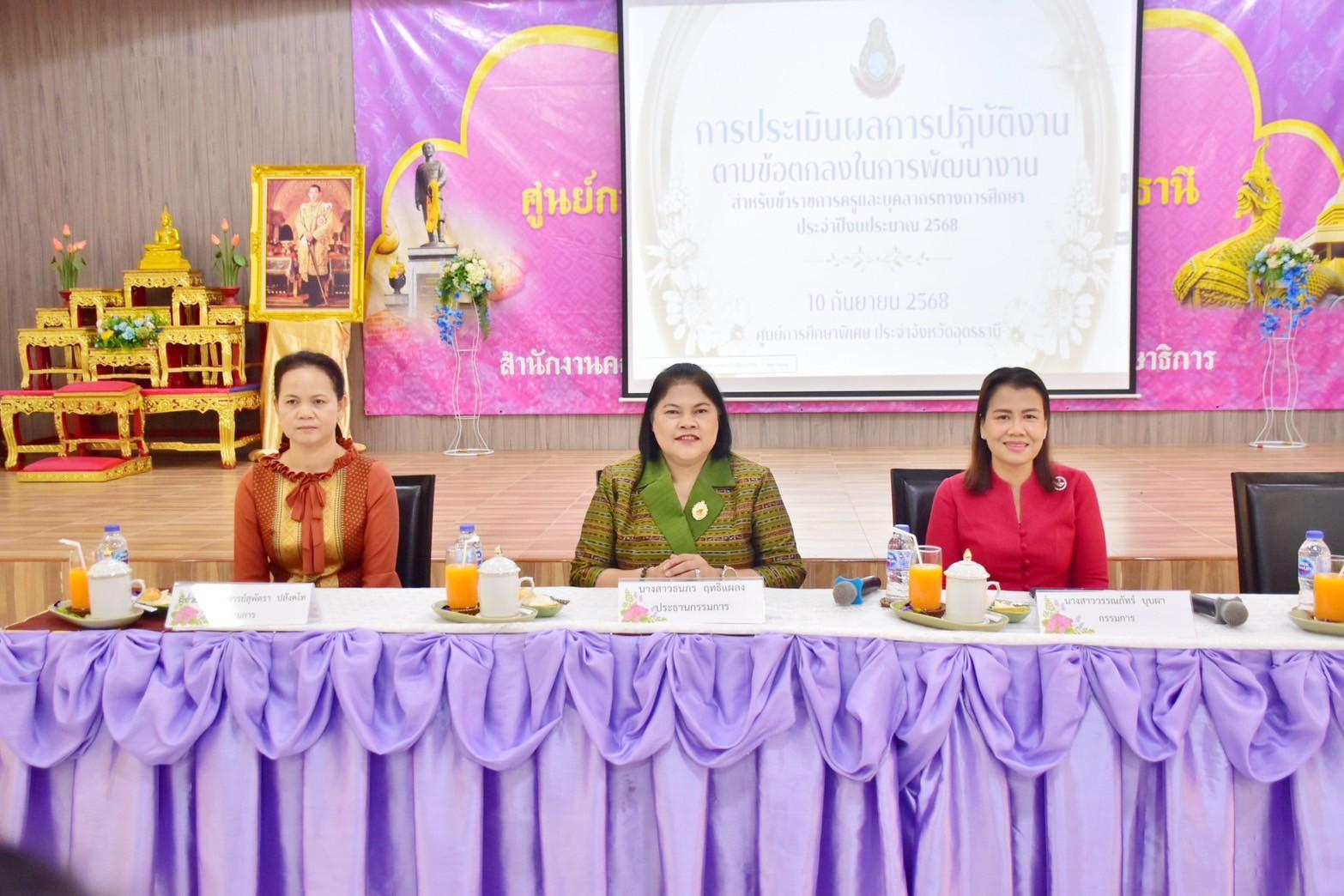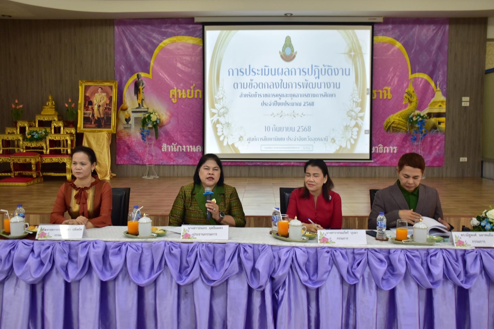วันที่ 10 กันยายน 2568 ศูนย์การศึกษาพิเศษ ประจำจังหวัดอุดรธานี ประเมินผลการปฏิบัติงานตามข้อตกลงในการพัฒนางาน (PA) ของข้าราชการครูและบุคลากรทางการศึกษาสายงานสอน โดยมีคณะกรรมการดังนี้